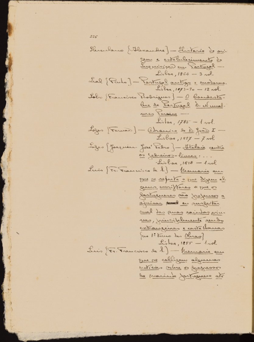 Obra Novo anno historico, ou Novo diario portuguez [manuscrito] : noticia abreviada de pessoas grandes e cousas notaveis de Portugal / Belizário Pimenta. Cópia em JPEG Encadernação DigitalI - 1 de Dezembro de 1640 - A Restauração II - 8 de Dezembro de 1720 - A Academia real d[e] historia Portuguesa III - 25 de Novembro de 1510 - Tomada de Goa por Affonso de Albuquerque IV - 11 de Agosto de 1829 - Victoria da Villa da Praia, nos Açores V - 26 de Janeiro de 1831 - Gil Vicente e a Inquisição VI - 4 de Dezembro de 1822 - O desterro do Ramalhão VII - 11 de Dezembro de 1795 - A divisão auxiliar portuguesa, nas campanhas de Roussillou e da Catalunha VIII - 18 de Julho de 1546 - O segundo cerco de Diu - O primeiro assalto IX - 27 de Novembro de 1807 - Embarque de D.João VI para o Brasil X - 14 de Fevereiro de 1387 - Casamento de D.João I e Filipa de Lencastre XI - 2 de Fevereiro de 1531 - A Ilha dos mortos XII - 5 de Fevereiro de 1525 - D. João III e o casamento XIII - 12 de Fevereiro de 1345 - Affonso IV e as ilhas canarias XIV - A viagem do monte sinai XV - 23 de Fevereiro de 1823 - O conde de Amarante e o absolutismo XVI - 5 de Março de 1823 - O conde de Amarante e as cortes de vinte XVII - 9 de Março de 1500 - A partida de Pedro Alvares Cabral XVIII - 15 de Março de 1147 - A tomada de Santarém XIX - 30 de Março de 1818 - D.João VI e a pedreirada XX - 6 de Abril de 1384 - A batalha dos Atoleiros XXI - 13 de Abril de 1821 - AO brigadeiro João Carlos de Saldanha no governo do Rio Grande do Sul XXII - 12 de Março de 1811 - A acção da Redinha XXIII - 30 de Abril de 1824 - A abrilada XXIV - 5 de Agosto de 1709 - A primeira ascensão do (padre voador) XXV - 16 de Abril de 1347 - As barbas de Viso-Rey | Encadernação Digital > Appendice > II - Bibliografia > 226 Tipo:image/jpeg Tamanho:94 KB Cor:24 bpp