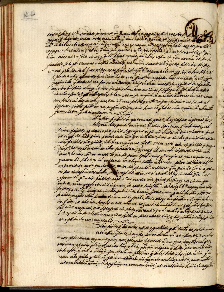 Obra LOPES, Domingos, 1588-1653 - Disputationes in Log[ic]a[m] Conimbr[icensis] [manuscrito], 1626. Cópia em JPEG Índice [Página de título] [Proaemium] [Disputatio prima] Disputationis in logicam conimb[ricensis] Disputatio [prim]a. De sp[ec]i illigi[bi]li Disputatio [secund]a. De vnitate et ap[ti]tudin[is] v[nive]r[sa]lis De p[rin]cipuis alijs defficultatibus ad u[nita]te spectantib[us] Disputatio [tertia]a De ente r[ati]o[n]is. Disputatio [quart]a De signis. Disputatio [quint]a De operatione i[nte]ll[ect]us. Disputatio [septim]a De ap[re]hentio[n]e, et iuditis. Disp[utatio] [non]a | Índice > Disputationis in logicam conimb[ricensis] > Disputatio [secund]a. De vnitate et ap[ti]tudin[is] v[nive]r[sa]lis > Sectio [quart]a > 43v |