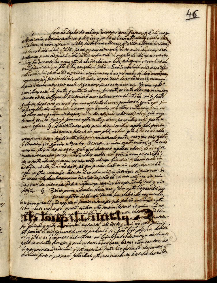 Obra LOPES, Domingos, 1588-1653 - Disputationes in Log[ic]a[m] Conimbr[icensis] [manuscrito], 1626. Cópia em JPEG Índice [Página de título] [Proaemium] [Disputatio prima] Disputationis in logicam conimb[ricensis] Disputatio [prim]a. De sp[ec]i illigi[bi]li Disputatio [secund]a. De vnitate et ap[ti]tudin[is] v[nive]r[sa]lis De p[rin]cipuis alijs defficultatibus ad u[nita]te spectantib[us] Disputatio [tertia]a De ente r[ati]o[n]is. Disputatio [quart]a De signis. Disputatio [quint]a De operatione i[nte]ll[ect]us. Disputatio [septim]a De ap[re]hentio[n]e, et iuditis. Disp[utatio] [non]a | Índice > Disputationis in logicam conimb[ricensis] > Disputatio [secund]a. De vnitate et ap[ti]tudin[is] v[nive]r[sa]lis > Sect[io] [quint]a > 46 |