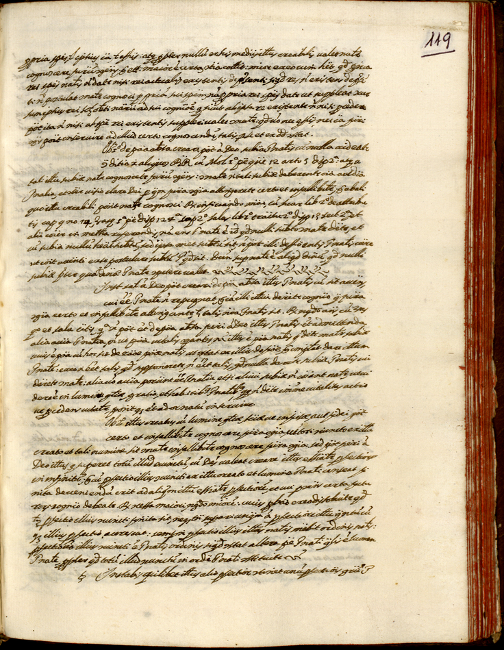 Obra LOPES, Domingos, 1588-1653 - Disputationes in Log[ic]a[m] Conimbr[icensis] [manuscrito], 1626. Cópia em JPEG Índice [Página de título] [Proaemium] [Disputatio prima] Disputationis in logicam conimb[ricensis] Disputatio [prim]a. De sp[ec]i illigi[bi]li Disputatio [secund]a. De vnitate et ap[ti]tudin[is] v[nive]r[sa]lis De p[rin]cipuis alijs defficultatibus ad u[nita]te spectantib[us] Disputatio [tertia]a De ente r[ati]o[n]is. Disputatio [quart]a De signis. Disputatio [quint]a De operatione i[nte]ll[ect]us. Disputatio [septim]a De ap[re]hentio[n]e, et iuditis. Disp[utatio] [non]a | Índice > Disputationis in logicam conimb[ricensis] > De fu[tu]ris [con]g[ent]ib[us]. Disp[utatio] [sext]a > Sectio 10 > 119 |