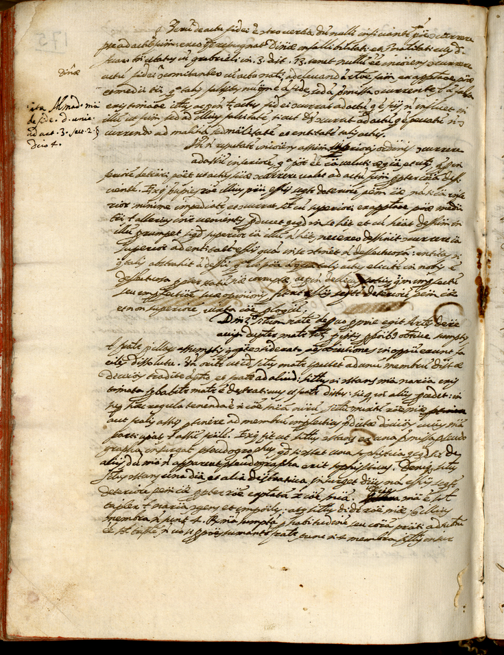 Obra LOPES, Domingos, 1588-1653 - Disputationes in Log[ic]a[m] Conimbr[icensis] [manuscrito], 1626. Cópia em JPEG Índice [Página de título] [Proaemium] [Disputatio prima] Disputationis in logicam conimb[ricensis] Disputatio [prim]a. De sp[ec]i illigi[bi]li Disputatio [secund]a. De vnitate et ap[ti]tudin[is] v[nive]r[sa]lis De p[rin]cipuis alijs defficultatibus ad u[nita]te spectantib[us] Disputatio [tertia]a De ente r[ati]o[n]is. Disputatio [quart]a De signis. Disputatio [quint]a De operatione i[nte]ll[ect]us. Disputatio [septim]a De ap[re]hentio[n]e, et iuditis. Disp[utatio] [non]a | Índice > Apendix Ad libros Topicorum > 175v |