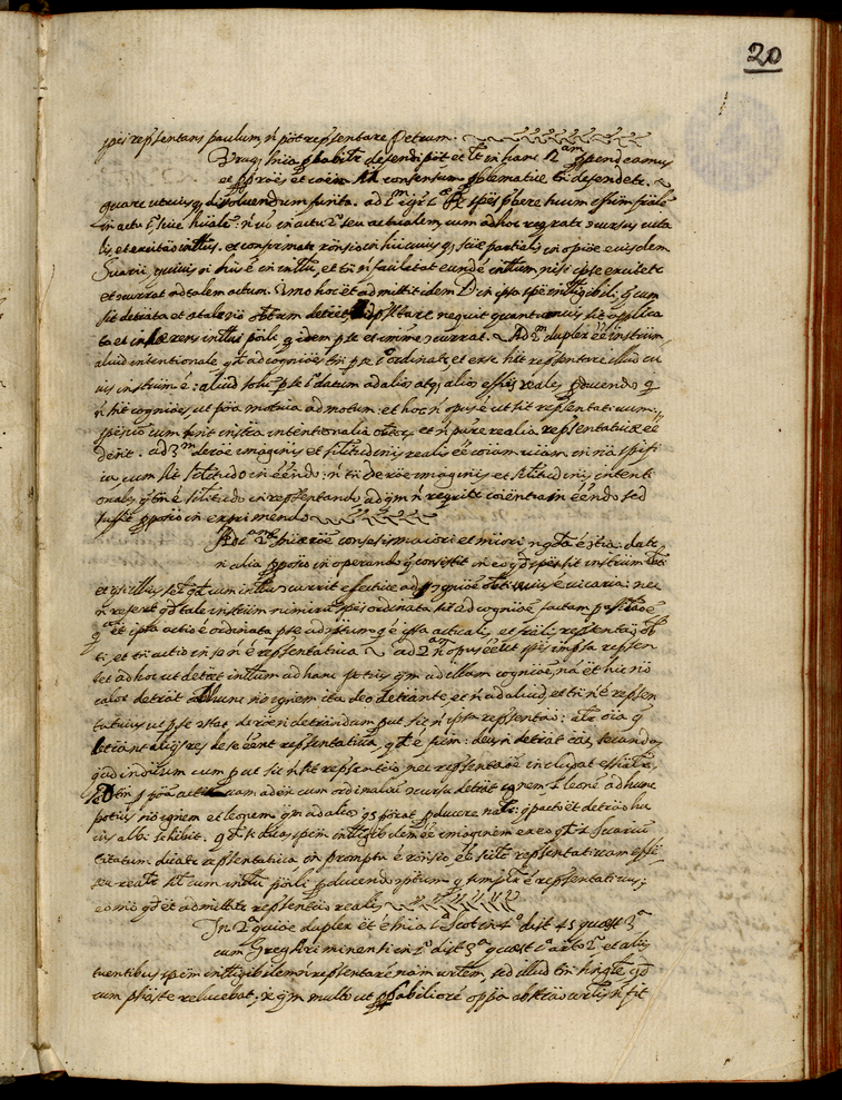 Obra LOPES, Domingos, 1588-1653 - Disputationes in Log[ic]a[m] Conimbr[icensis] [manuscrito], 1626. Cópia em JPEG Índice [Página de título] [Proaemium] [Disputatio prima] Disputationis in logicam conimb[ricensis] Disputatio [prim]a. De sp[ec]i illigi[bi]li Disputatio [secund]a. De vnitate et ap[ti]tudin[is] v[nive]r[sa]lis De p[rin]cipuis alijs defficultatibus ad u[nita]te spectantib[us] Disputatio [tertia]a De ente r[ati]o[n]is. Disputatio [quart]a De signis. Disputatio [quint]a De operatione i[nte]ll[ect]us. Disputatio [septim]a De ap[re]hentio[n]e, et iuditis. Disp[utatio] [non]a | Índice > Disputationis in logicam conimb[ricensis] > Disputatio [prim]a. De sp[ec]i illigi[bi]li > Sectio [secund]a > 20 |