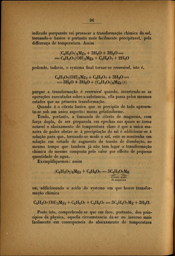 Obra Algumas considerações sobre a pharmacia portugueza Cópia em JPEG | Encadernação Digital > HISTORIA DA PHARMACIA EM PORTUGAL - LEGISLAÇÃO PHARMACEUTICA > DA PHARMACOPÉA > III - Da limonada de citrato de magnesia com força dupla > 96 |