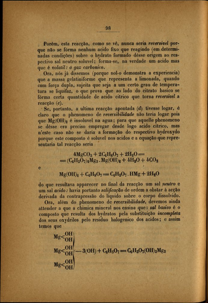 Obra Algumas considerações sobre a pharmacia portugueza Cópia em JPEG | Encadernação Digital > HISTORIA DA PHARMACIA EM PORTUGAL - LEGISLAÇÃO PHARMACEUTICA > DA PHARMACOPÉA > III - Da limonada de citrato de magnesia com força dupla > 98 |