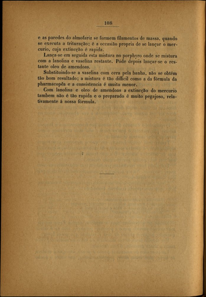 Obra Algumas considerações sobre a pharmacia portugueza Cópia em JPEG | Encadernação Digital > HISTORIA DA PHARMACIA EM PORTUGAL - LEGISLAÇÃO PHARMACEUTICA > DA PHARMACOPÉA > IV - Da pomada mercurial da Pharmacopêa > 108 |