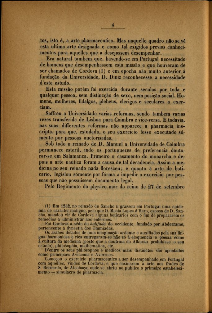 Obra Algumas considerações sobre a pharmacia portugueza Cópia em JPEG | Encadernação Digital > HISTORIA DA PHARMACIA EM PORTUGAL - LEGISLAÇÃO PHARMACEUTICA > FUNDAÇÃO DO ESTUDO GERAL EM LISBOA > 4 |