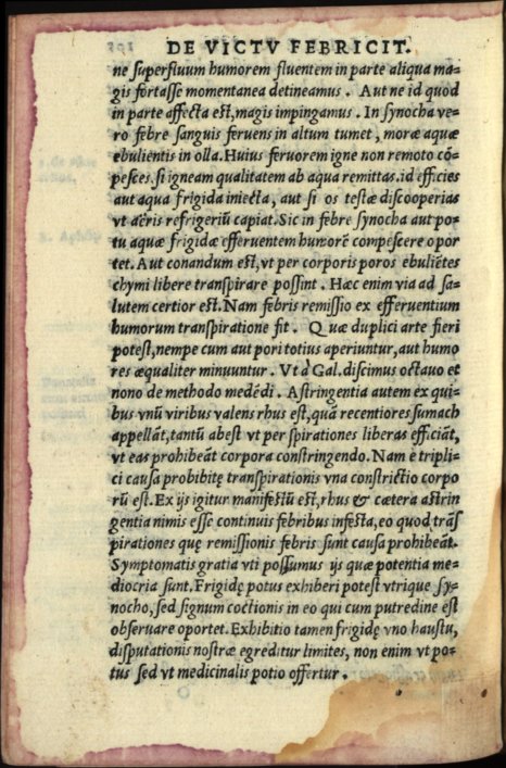 | Obra  Liber de ratione victus in singulis febribus secundùm Hippoc[ratem]  Cópia em JPEG Encadernação Digital LIber Primus. Discepatio an Crasius victus acute febricitantibus... Liber Secundus. Brudi Lusitani Dionysii medici filii De victu febrici Tantium ad Anglos. Liber Tertius. Brudi Lusitani Dionysii medici filii De victu febrici Tantium ad Anglos. [Marca de Impressor] [Colofão] | Encadernação Digital > Liber Tertius. Brudi Lusitani Dionysii medici filii De victu febrici Tantium ad Anglos. > Cap. VI. > 105v |