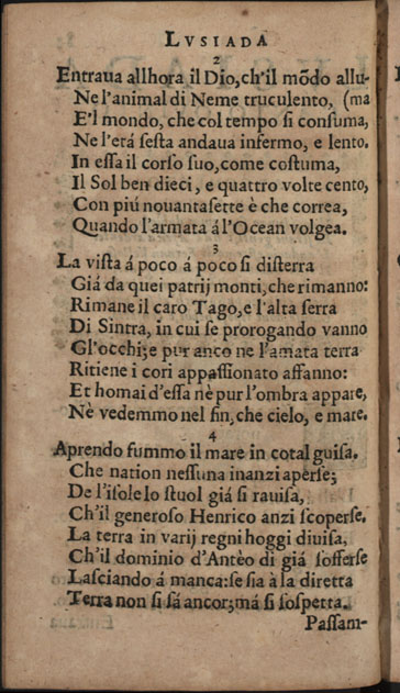 Obra CAMÕES, Luís de - Lusiada italiana di Carlo Antonio Paggi..., 1659. Cópia em JPEG Índice [Portada] [Carta a Gio Georgio Giustiniano sobre Os Lusíadas, suas traduções e vida de Camões] [Poemas: homenagens a D. Luís Vasco da Gama, Marquês de Nisa, a D. Jerónimo de Ataíde, conde de Atouguia, a D. António de Meneses, conde de Cantanhede, e aos Académicos Insensatos de Perugia] Canto primo Canto secondo Canto terzo Canto qvarto Canto qvinto Canto sesto Canto settimo Canto ottavo Canto nono Canto decimo | Índice > Canto qvinto > 82v |