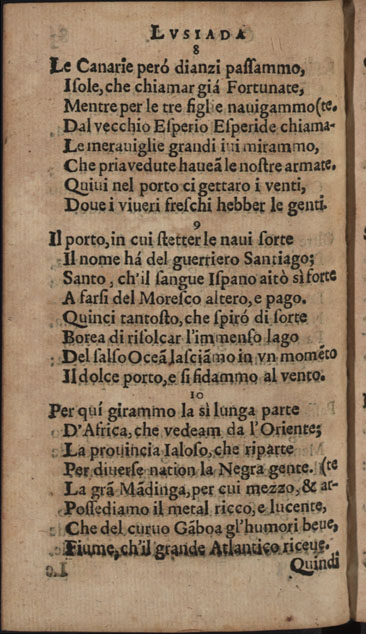 Obra CAMÕES, Luís de - Lusiada italiana di Carlo Antonio Paggi..., 1659. Cópia em JPEG Índice [Portada] [Carta a Gio Georgio Giustiniano sobre Os Lusíadas, suas traduções e vida de Camões] [Poemas: homenagens a D. Luís Vasco da Gama, Marquês de Nisa, a D. Jerónimo de Ataíde, conde de Atouguia, a D. António de Meneses, conde de Cantanhede, e aos Académicos Insensatos de Perugia] Canto primo Canto secondo Canto terzo Canto qvarto Canto qvinto Canto sesto Canto settimo Canto ottavo Canto nono Canto decimo | Índice > Canto qvinto > 83v |