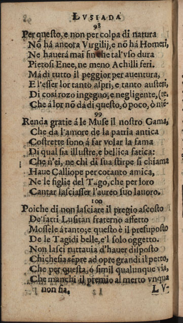 Obra CAMÕES, Luís de - Lusiada italiana di Carlo Antonio Paggi..., 1659. Cópia em JPEG Índice [Portada] [Carta a Gio Georgio Giustiniano sobre Os Lusíadas, suas traduções e vida de Camões] [Poemas: homenagens a D. Luís Vasco da Gama, Marquês de Nisa, a D. Jerónimo de Ataíde, conde de Atouguia, a D. António de Meneses, conde de Cantanhede, e aos Académicos Insensatos de Perugia] Canto primo Canto secondo Canto terzo Canto qvarto Canto qvinto Canto sesto Canto settimo Canto ottavo Canto nono Canto decimo | Índice > Canto qvinto > 98v |