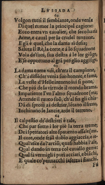 Obra CAMÕES, Luís de - Lusiada italiana di Carlo Antonio Paggi..., 1659. Cópia em JPEG Índice [Portada] [Carta a Gio Georgio Giustiniano sobre Os Lusíadas, suas traduções e vida de Camões] [Poemas: homenagens a D. Luís Vasco da Gama, Marquês de Nisa, a D. Jerónimo de Ataíde, conde de Atouguia, a D. António de Meneses, conde de Cantanhede, e aos Académicos Insensatos de Perugia] Canto primo Canto secondo Canto terzo Canto qvarto Canto qvinto Canto sesto Canto settimo Canto ottavo Canto nono Canto decimo | Índice > Canto sesto > 109v |