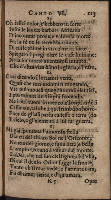 Obra CAMÕES, Luís de - Lusiada italiana di Carlo Antonio Paggi..., 1659. Cópia em JPEG Índice [Portada] [Carta a Gio Georgio Giustiniano sobre Os Lusíadas, suas traduções e vida de Camões] [Poemas: homenagens a D. Luís Vasco da Gama, Marquês de Nisa, a D. Jerónimo de Ataíde, conde de Atouguia, a D. António de Meneses, conde de Cantanhede, e aos Académicos Insensatos de Perugia] Canto primo Canto secondo Canto terzo Canto qvarto Canto qvinto Canto sesto Canto settimo Canto ottavo Canto nono Canto decimo | Índice > Canto sesto > 113 |