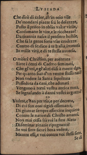 Obra CAMÕES, Luís de - Lusiada italiana di Carlo Antonio Paggi..., 1659. Cópia em JPEG Índice [Portada] [Carta a Gio Georgio Giustiniano sobre Os Lusíadas, suas traduções e vida de Camões] [Poemas: homenagens a D. Luís Vasco da Gama, Marquês de Nisa, a D. Jerónimo de Ataíde, conde de Atouguia, a D. António de Meneses, conde de Cantanhede, e aos Académicos Insensatos de Perugia] Canto primo Canto secondo Canto terzo Canto qvarto Canto qvinto Canto sesto Canto settimo Canto ottavo Canto nono Canto decimo | Índice > Canto settimo > 117v |