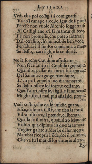 Obra CAMÕES, Luís de - Lusiada italiana di Carlo Antonio Paggi..., 1659. Cópia em JPEG Índice [Portada] [Carta a Gio Georgio Giustiniano sobre Os Lusíadas, suas traduções e vida de Camões] [Poemas: homenagens a D. Luís Vasco da Gama, Marquês de Nisa, a D. Jerónimo de Ataíde, conde de Atouguia, a D. António de Meneses, conde de Cantanhede, e aos Académicos Insensatos de Perugia] Canto primo Canto secondo Canto terzo Canto qvarto Canto qvinto Canto sesto Canto settimo Canto ottavo Canto nono Canto decimo | Índice > Canto ottavo > 133v |