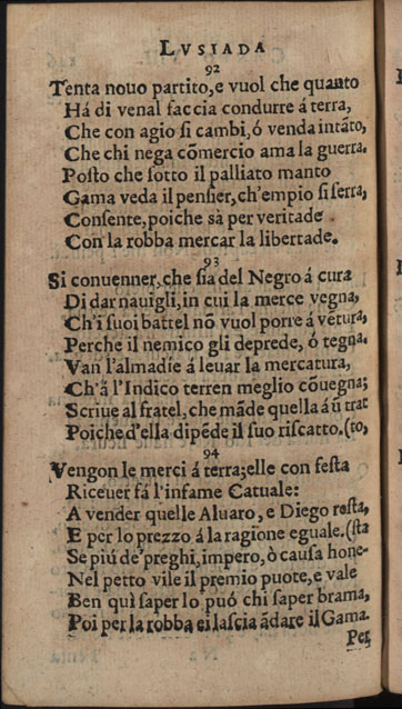 Obra CAMÕES, Luís de - Lusiada italiana di Carlo Antonio Paggi..., 1659. Cópia em JPEG Índice [Portada] [Carta a Gio Georgio Giustiniano sobre Os Lusíadas, suas traduções e vida de Camões] [Poemas: homenagens a D. Luís Vasco da Gama, Marquês de Nisa, a D. Jerónimo de Ataíde, conde de Atouguia, a D. António de Meneses, conde de Cantanhede, e aos Académicos Insensatos de Perugia] Canto primo Canto secondo Canto terzo Canto qvarto Canto qvinto Canto sesto Canto settimo Canto ottavo Canto nono Canto decimo | Índice > Canto ottavo > 146v |