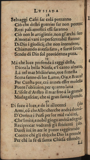 Obra CAMÕES, Luís de - Lusiada italiana di Carlo Antonio Paggi..., 1659. Cópia em JPEG Índice [Portada] [Carta a Gio Georgio Giustiniano sobre Os Lusíadas, suas traduções e vida de Camões] [Poemas: homenagens a D. Luís Vasco da Gama, Marquês de Nisa, a D. Jerónimo de Ataíde, conde de Atouguia, a D. António de Meneses, conde de Cantanhede, e aos Académicos Insensatos de Perugia] Canto primo Canto secondo Canto terzo Canto qvarto Canto qvinto Canto sesto Canto settimo Canto ottavo Canto nono Canto decimo | Índice > Canto decimo > 171v |