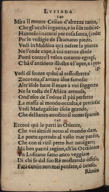 Obra CAMÕES, Luís de - Lusiada italiana di Carlo Antonio Paggi..., 1659. Cópia em JPEG Índice [Portada] [Carta a Gio Georgio Giustiniano sobre Os Lusíadas, suas traduções e vida de Camões] [Poemas: homenagens a D. Luís Vasco da Gama, Marquês de Nisa, a D. Jerónimo de Ataíde, conde de Atouguia, a D. António de Meneses, conde de Cantanhede, e aos Académicos Insensatos de Perugia] Canto primo Canto secondo Canto terzo Canto qvarto Canto qvinto Canto sesto Canto settimo Canto ottavo Canto nono Canto decimo | Índice > Canto decimo > 188v |