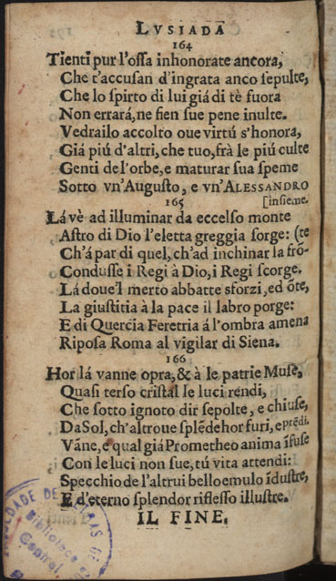 Obra CAMÕES, Luís de - Lusiada italiana di Carlo Antonio Paggi..., 1659. Cópia em JPEG Índice [Portada] [Carta a Gio Georgio Giustiniano sobre Os Lusíadas, suas traduções e vida de Camões] [Poemas: homenagens a D. Luís Vasco da Gama, Marquês de Nisa, a D. Jerónimo de Ataíde, conde de Atouguia, a D. António de Meneses, conde de Cantanhede, e aos Académicos Insensatos de Perugia] Canto primo Canto secondo Canto terzo Canto qvarto Canto qvinto Canto sesto Canto settimo Canto ottavo Canto nono Canto decimo | Índice > Canto decimo > 192v |