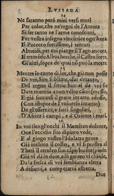Obra CAMÕES, Luís de - Lusiada italiana di Carlo Antonio Paggi..., 1659. Cópia em JPEG Índice [Portada] [Carta a Gio Georgio Giustiniano sobre Os Lusíadas, suas traduções e vida de Camões] [Poemas: homenagens a D. Luís Vasco da Gama, Marquês de Nisa, a D. Jerónimo de Ataíde, conde de Atouguia, a D. António de Meneses, conde de Cantanhede, e aos Académicos Insensatos de Perugia] Canto primo Canto secondo Canto terzo Canto qvarto Canto qvinto Canto sesto Canto settimo Canto ottavo Canto nono Canto decimo | Índice > Canto primo > 3v |