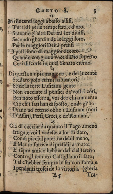 Obra CAMÕES, Luís de - Lusiada italiana di Carlo Antonio Paggi..., 1659. Cópia em JPEG Índice [Portada] [Carta a Gio Georgio Giustiniano sobre Os Lusíadas, suas traduções e vida de Camões] [Poemas: homenagens a D. Luís Vasco da Gama, Marquês de Nisa, a D. Jerónimo de Ataíde, conde de Atouguia, a D. António de Meneses, conde de Cantanhede, e aos Académicos Insensatos de Perugia] Canto primo Canto secondo Canto terzo Canto qvarto Canto qvinto Canto sesto Canto settimo Canto ottavo Canto nono Canto decimo | Índice > Canto primo > 5 |