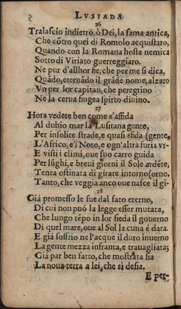 Obra CAMÕES, Luís de - Lusiada italiana di Carlo Antonio Paggi..., 1659. Cópia em JPEG Índice [Portada] [Carta a Gio Georgio Giustiniano sobre Os Lusíadas, suas traduções e vida de Camões] [Poemas: homenagens a D. Luís Vasco da Gama, Marquês de Nisa, a D. Jerónimo de Ataíde, conde de Atouguia, a D. António de Meneses, conde de Cantanhede, e aos Académicos Insensatos de Perugia] Canto primo Canto secondo Canto terzo Canto qvarto Canto qvinto Canto sesto Canto settimo Canto ottavo Canto nono Canto decimo | Índice > Canto primo > 5v |