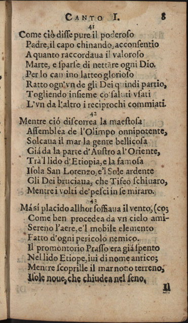 Obra CAMÕES, Luís de - Lusiada italiana di Carlo Antonio Paggi..., 1659. Cópia em JPEG Índice [Portada] [Carta a Gio Georgio Giustiniano sobre Os Lusíadas, suas traduções e vida de Camões] [Poemas: homenagens a D. Luís Vasco da Gama, Marquês de Nisa, a D. Jerónimo de Ataíde, conde de Atouguia, a D. António de Meneses, conde de Cantanhede, e aos Académicos Insensatos de Perugia] Canto primo Canto secondo Canto terzo Canto qvarto Canto qvinto Canto sesto Canto settimo Canto ottavo Canto nono Canto decimo | Índice > Canto primo > 8 |