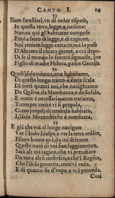Obra CAMÕES, Luís de - Lusiada italiana di Carlo Antonio Paggi..., 1659. Cópia em JPEG Índice [Portada] [Carta a Gio Georgio Giustiniano sobre Os Lusíadas, suas traduções e vida de Camões] [Poemas: homenagens a D. Luís Vasco da Gama, Marquês de Nisa, a D. Jerónimo de Ataíde, conde de Atouguia, a D. António de Meneses, conde de Cantanhede, e aos Académicos Insensatos de Perugia] Canto primo Canto secondo Canto terzo Canto qvarto Canto qvinto Canto sesto Canto settimo Canto ottavo Canto nono Canto decimo | Índice > Canto primo > 10 |