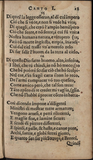 Obra CAMÕES, Luís de - Lusiada italiana di Carlo Antonio Paggi..., 1659. Cópia em JPEG Índice [Portada] [Carta a Gio Georgio Giustiniano sobre Os Lusíadas, suas traduções e vida de Camões] [Poemas: homenagens a D. Luís Vasco da Gama, Marquês de Nisa, a D. Jerónimo de Ataíde, conde de Atouguia, a D. António de Meneses, conde de Cantanhede, e aos Académicos Insensatos de Perugia] Canto primo Canto secondo Canto terzo Canto qvarto Canto qvinto Canto sesto Canto settimo Canto ottavo Canto nono Canto decimo | Índice > Canto primo > 12 |