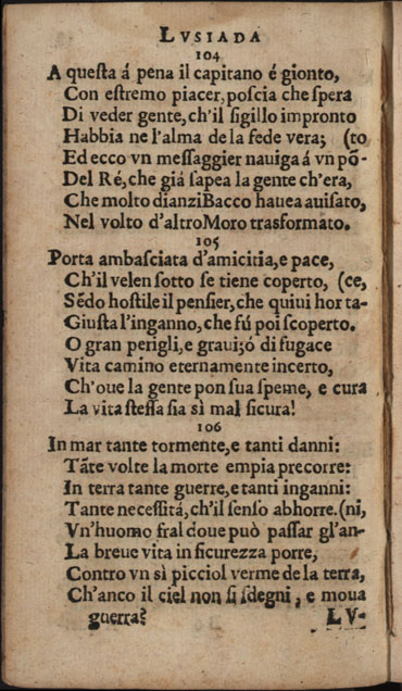 Obra CAMÕES, Luís de - Lusiada italiana di Carlo Antonio Paggi..., 1659. Cópia em JPEG Índice [Portada] [Carta a Gio Georgio Giustiniano sobre Os Lusíadas, suas traduções e vida de Camões] [Poemas: homenagens a D. Luís Vasco da Gama, Marquês de Nisa, a D. Jerónimo de Ataíde, conde de Atouguia, a D. António de Meneses, conde de Cantanhede, e aos Académicos Insensatos de Perugia] Canto primo Canto secondo Canto terzo Canto qvarto Canto qvinto Canto sesto Canto settimo Canto ottavo Canto nono Canto decimo | Índice > Canto primo > 18v |