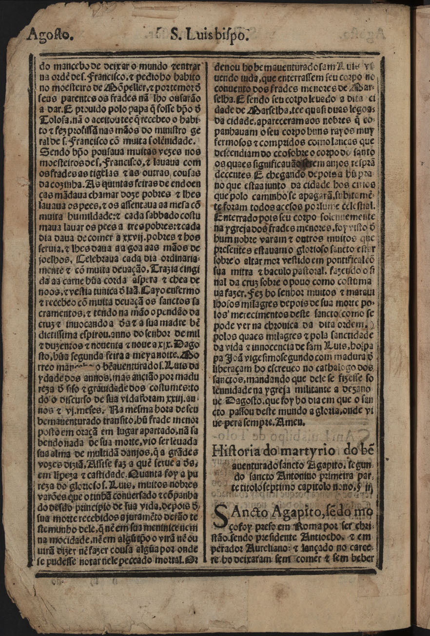 Obra ROSÁRIO, Diogo do, O.P. - Historia das vidas & feitos heroicos & obras insignes dos sanctos, que nesta seguda parte se contem, 1567. Cópia em JPEG Índice[Encadernação com marca de posse e nota manuscrita] Da festa da san[n]ctissima Trindade Do sacratissimo sacrame[n]to da eucharistia Sermão do sancto tempo da Coresma Do sacratisimo dis de quinta feira da Cea do Senhor Da sacratisima morte e paixam de nosso saluador Jesu Chr[ist]o Da gloriosa Ressurreiçã de nosso rede[m]ptor Da gloriosa Ascensam aos ceos do filho de Deos nosso redemptor e saluador Jesu Chr[ist]o Da sacratissima festa do spirito sancto | Índice > Agosto > XCIXv Tipo:image/jpeg Tamanho:343 KB Cor:24 bpp