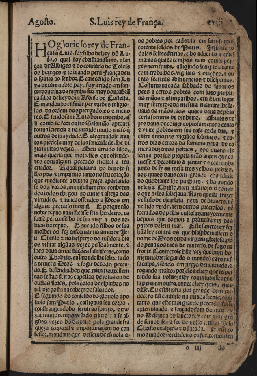 Obra ROSÁRIO, Diogo do, O.P. - Historia das vidas & feitos heroicos & obras insignes dos sanctos, que nesta seguda parte se contem, 1567. Cópia em JPEG Índice[Encadernação com marca de posse e nota manuscrita] Da festa da san[n]ctissima Trindade Do sacratissimo sacrame[n]to da eucharistia Sermão do sancto tempo da Coresma Do sacratisimo dis de quinta feira da Cea do Senhor Da sacratisima morte e paixam de nosso saluador Jesu Chr[ist]o Da gloriosa Ressurreiçã de nosso rede[m]ptor Da gloriosa Ascensam aos ceos do filho de Deos nosso redemptor e saluador Jesu Chr[ist]o Da sacratissima festa do spirito sancto | Índice > Agosto > CVIII Tipo:image/jpeg Tamanho:357 KB Cor:24 bpp