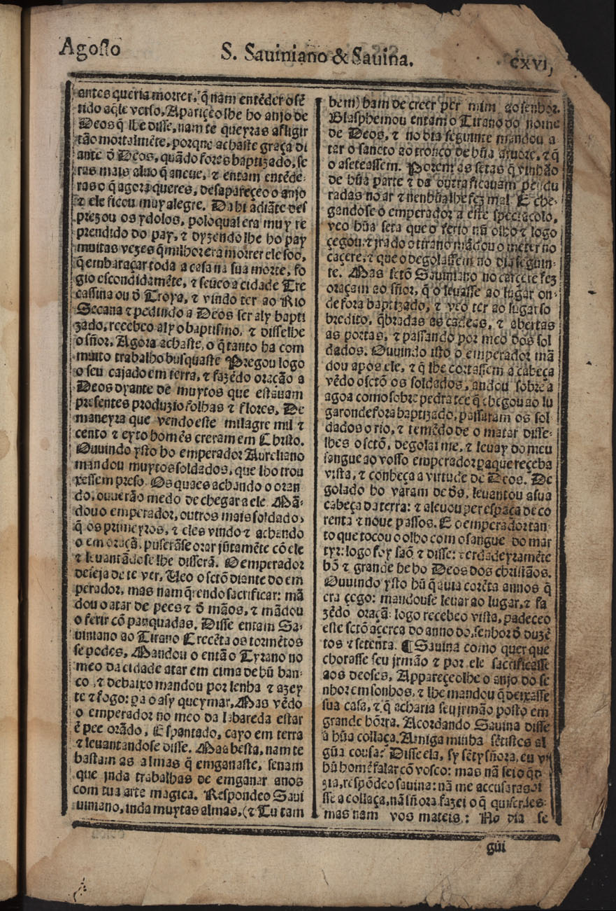 Obra ROSÁRIO, Diogo do, O.P. - Historia das vidas & feitos heroicos & obras insignes dos sanctos, que nesta seguda parte se contem, 1567. Cópia em JPEG Índice[Encadernação com marca de posse e nota manuscrita] Da festa da san[n]ctissima Trindade Do sacratissimo sacrame[n]to da eucharistia Sermão do sancto tempo da Coresma Do sacratisimo dis de quinta feira da Cea do Senhor Da sacratisima morte e paixam de nosso saluador Jesu Chr[ist]o Da gloriosa Ressurreiçã de nosso rede[m]ptor Da gloriosa Ascensam aos ceos do filho de Deos nosso redemptor e saluador Jesu Chr[ist]o Da sacratissima festa do spirito sancto | Índice > Agosto > CXVII Tipo:image/jpeg Tamanho:366 KB Cor:24 bpp