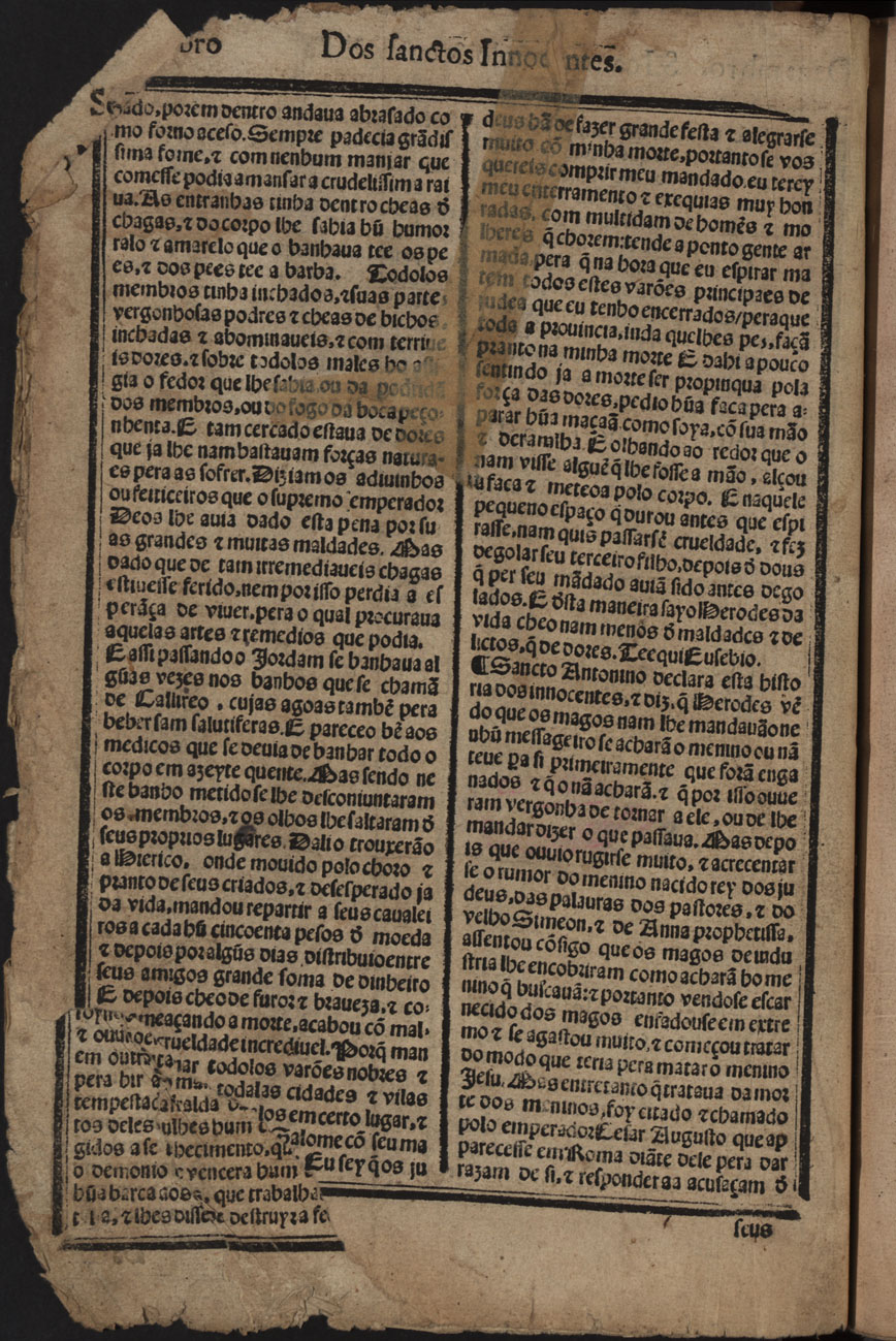 Obra ROSÁRIO, Diogo do, O.P. - Historia das vidas & feitos heroicos & obras insignes dos sanctos, que nesta seguda parte se contem, 1567. Cópia em JPEG Índice[Encadernação com marca de posse e nota manuscrita] Da festa da san[n]ctissima Trindade Do sacratissimo sacrame[n]to da eucharistia Sermão do sancto tempo da Coresma Do sacratisimo dis de quinta feira da Cea do Senhor Da sacratisima morte e paixam de nosso saluador Jesu Chr[ist]o Da gloriosa Ressurreiçã de nosso rede[m]ptor Da gloriosa Ascensam aos ceos do filho de Deos nosso redemptor e saluador Jesu Chr[ist]o Da sacratissima festa do spirito sancto | Índice > [Dezembro] > XLVIIIv Tipo:image/jpeg Tamanho:422 KB Cor:24 bpp