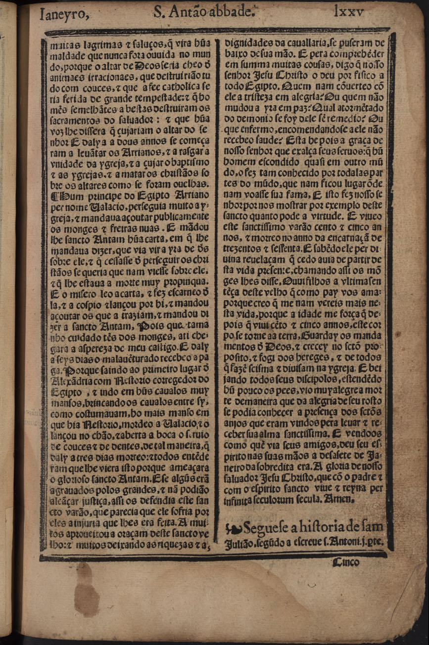 Obra ROSÁRIO, Diogo do, O.P. - Historia das vidas & feitos heroicos & obras insignes dos sanctos, que nesta seguda parte se contem, 1567. Cópia em JPEG Índice[Encadernação com marca de posse e nota manuscrita] Da festa da san[n]ctissima Trindade Do sacratissimo sacrame[n]to da eucharistia Sermão do sancto tempo da Coresma Do sacratisimo dis de quinta feira da Cea do Senhor Da sacratisima morte e paixam de nosso saluador Jesu Chr[ist]o Da gloriosa Ressurreiçã de nosso rede[m]ptor Da gloriosa Ascensam aos ceos do filho de Deos nosso redemptor e saluador Jesu Chr[ist]o Da sacratissima festa do spirito sancto | Índice > [Ianeyro] > LXXV Tipo:image/jpeg Tamanho:353 KB Cor:24 bpp
