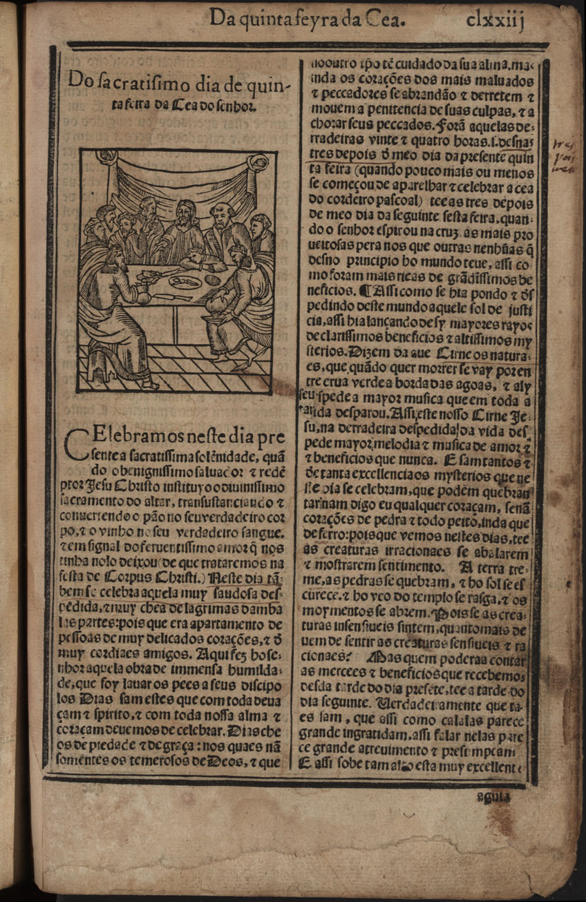 Obra ROSÁRIO, Diogo do, O.P. - Historia das vidas & feitos heroicos & obras insignes dos sanctos, que nesta seguda parte se contem, 1567. Cópia em JPEG Índice[Encadernação com marca de posse e nota manuscrita] Da festa da san[n]ctissima Trindade Do sacratissimo sacrame[n]to da eucharistia Sermão do sancto tempo da Coresma Do sacratisimo dis de quinta feira da Cea do Senhor Da sacratisima morte e paixam de nosso saluador Jesu Chr[ist]o Da gloriosa Ressurreiçã de nosso rede[m]ptor Da gloriosa Ascensam aos ceos do filho de Deos nosso redemptor e saluador Jesu Chr[ist]o Da sacratissima festa do spirito sancto | Índice > Do sacratisimo dis de quinta feira da Cea do Senhor > CLXXIII Tipo:image/jpeg Tamanho:322 KB Cor:24 bpp