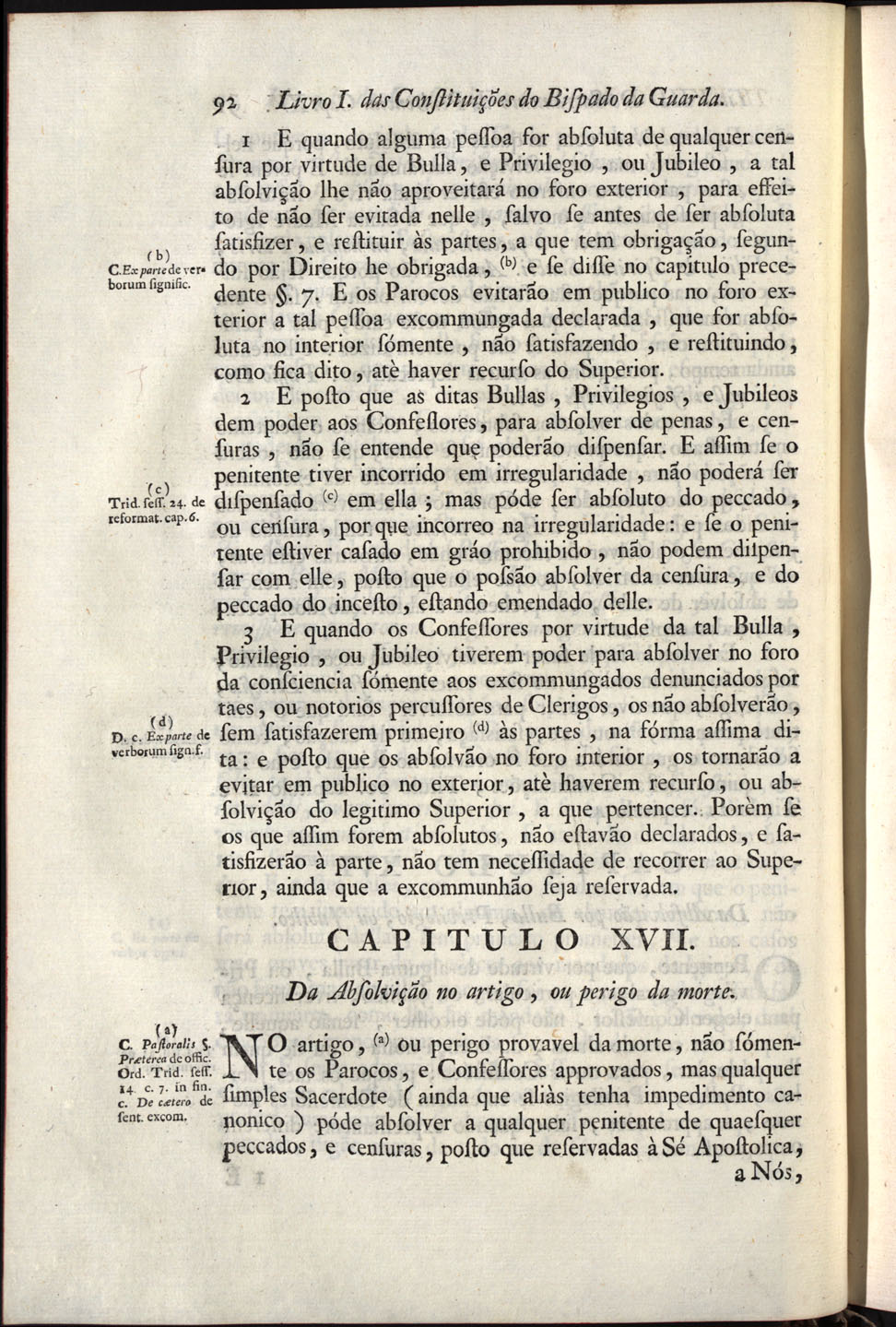 Obra GUARDA. Diocese - Constituições synodaes do Bispado da Guarda, 1759. Cópia em JPEG Índice Licenças [Taxa] Livro I Titulo VIII Livro II Proemio Titulo III Livro III Proemio Titulo VI Titulo XV Livro IV Proemio Livro V Proemio Titulo IX Titulo XII Titulo XIV Titulo XIX Index […] Repertorio das constituições do bispado da Guarda 675 676 677 678 679 680 681 682 683 684 685 686 687 688 689 690 691 692 693 694 695 696 697 698 699 700 708 701 709 702 710 703 711 704 712 705 713 706 714 707 715 716 717 718 719 720 721 722 723 724 725 726 727 728 729 730 731 732 733 734 735 736 737 738 739 740 741 742 743 744 745 746 747 748 749 750 751 752 753 754 755 756 757 758 759 760 761 762 763 764 765 766 767 768 769 770 771 772 773 774 775 776 777 778 779 780 781 782 783 784 785 786 787 788 789 790 791 792 793 794 795 796 797 798 799 b [Pastoral de D. Bernardo António de Melo Osório, Bispo da Guarda, 17--] | Índice > Livro I > Titulo VIII > 92 |