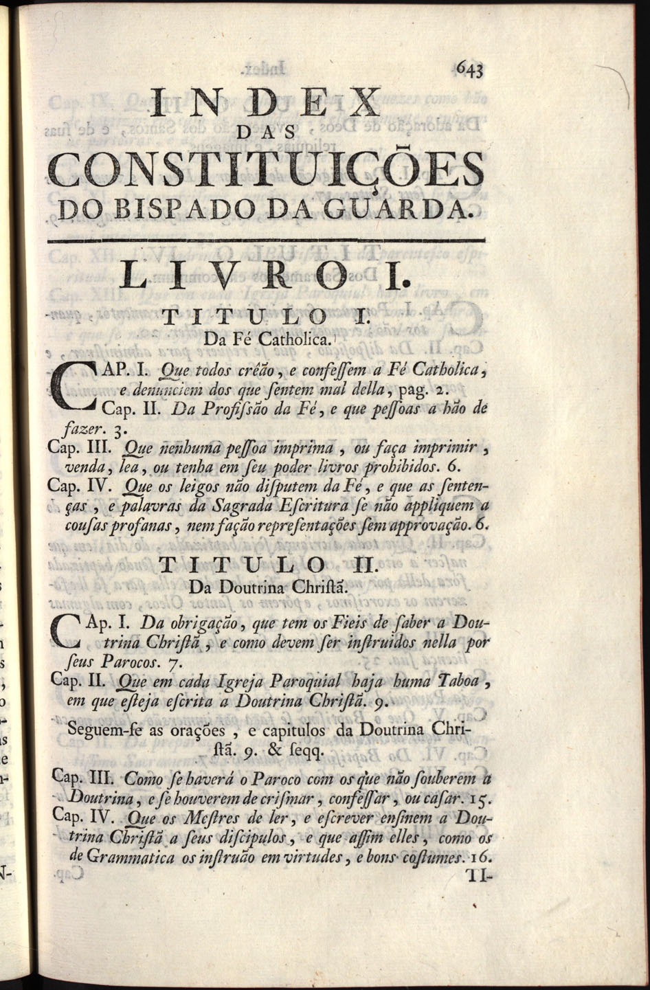 Obra GUARDA. Diocese - Constituições synodaes do Bispado da Guarda, 1759. Cópia em JPEG Índice Licenças [Taxa] Livro I Titulo VIII Livro II Proemio Titulo III Livro III Proemio Titulo VI Titulo XV Livro IV Proemio Livro V Proemio Titulo IX Titulo XII Titulo XIV Titulo XIX Index […] Repertorio das constituições do bispado da Guarda 675 676 677 678 679 680 681 682 683 684 685 686 687 688 689 690 691 692 693 694 695 696 697 698 699 700 708 701 709 702 710 703 711 704 712 705 713 706 714 707 715 716 717 718 719 720 721 722 723 724 725 726 727 728 729 730 731 732 733 734 735 736 737 738 739 740 741 742 743 744 745 746 747 748 749 750 751 752 753 754 755 756 757 758 759 760 761 762 763 764 765 766 767 768 769 770 771 772 773 774 775 776 777 778 779 780 781 782 783 784 785 786 787 788 789 790 791 792 793 794 795 796 797 798 799 b [Pastoral de D. Bernardo António de Melo Osório, Bispo da Guarda, 17--] | Índice > Index […] > 643 |